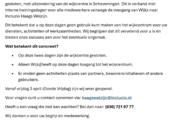 Geachte heer/mevrouw, Op woensdag 1 april en donderdag 2 april zijn alle Servicepunten en wijkcentra gesloten, met uitzondering van de...